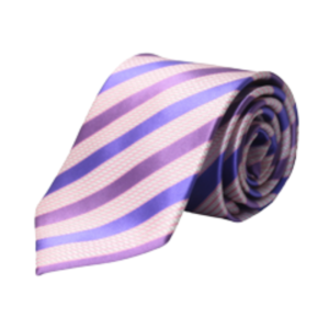This multi-striped necktie features shades of violet and pink accented with subtle white stripes, offering a refined look suitable for