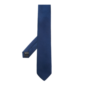 This blue printed necktie is designed for formal and semi-formal wear, crafted from polyester fabric for a smooth and structured